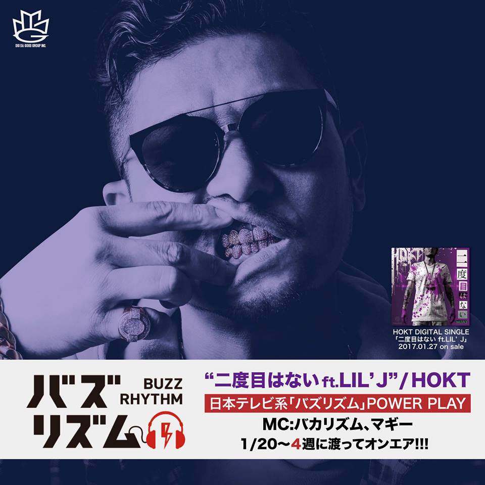 HOKTのアルバム「G in RHYMES SEASON2」からシングルカットされる楽曲「二度目はない feat. LIL’J」(1/27 on sale)が、日テレ系人気音楽番組「バズリズム」の1/20オンエア分からパワープレイに決定いたしました!!