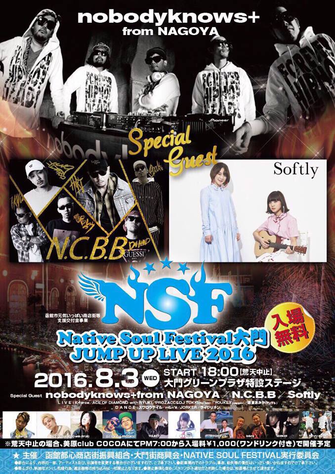 8/3(水)!函館 大門グリーンプラザ特設ステージ にて開催の「Native Soul Festival 大門 JUMP UP LIVE 2016」に、N.C.B.Bが出演!