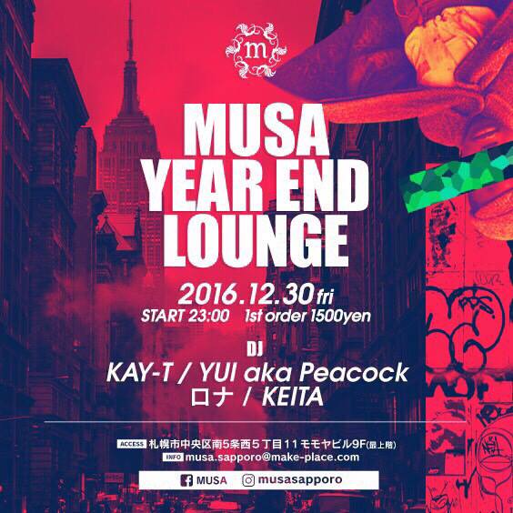 2016.12.30(FRI) MUSA YEAR END LOUNGE@札幌「DJ KAY-T 出演」