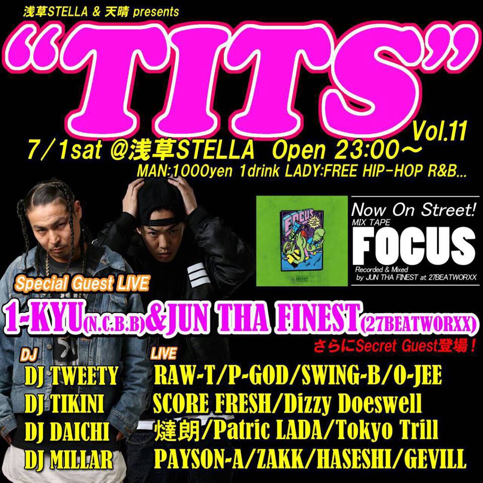 7/1(土) 浅草 STELLA にて開催の「TITS」に、1-KYU & JUN THA FINESTが出演!