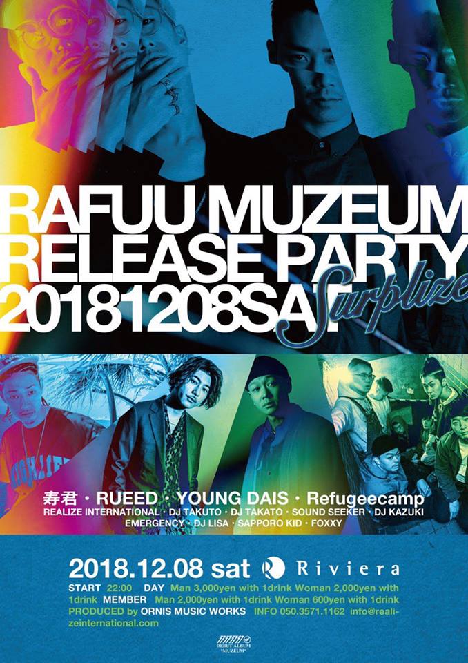 12/8(土) 札幌 Riviera sapporo にて開催の「SUPLIZE 番外編 RAFUU “MUZEUM” RELEASE PARTY」に、YOUNG DAIS が出演!
