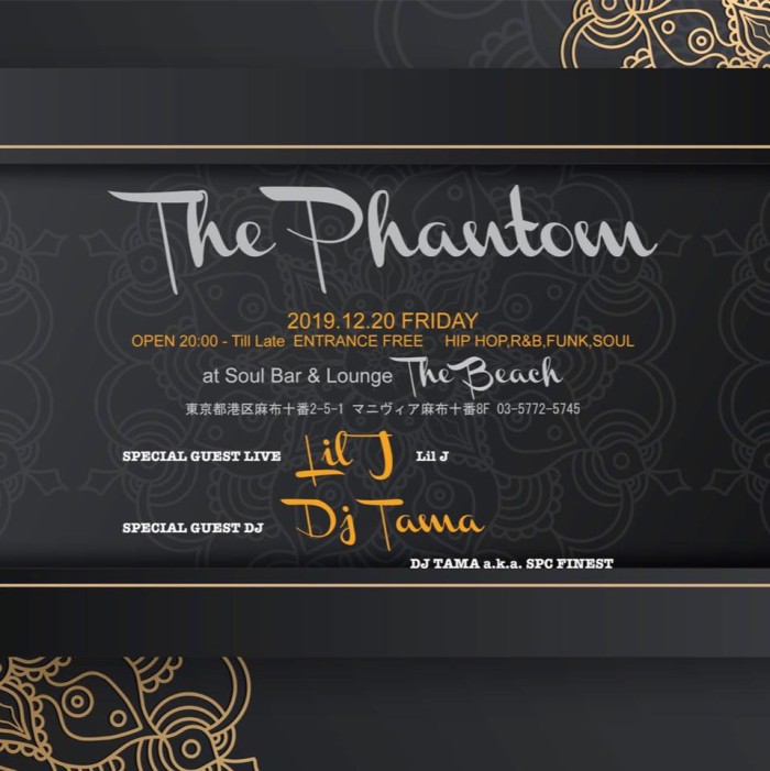 12/20(金) 東京 麻布十番 SOUL BAR & LOUNGE THE BEACH にて開催の「The Phantom」に、LIL’J が出演!