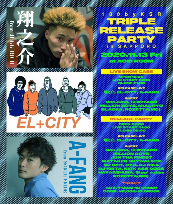2020.11.13(FRI) 100byKSR “翔之介 & EL+CITY & A-FANG” Triple Release Party in Sapporo