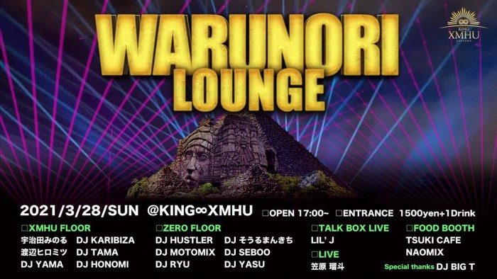 3/28(SUN) 札幌 KING XMHU にて開催の「WARUNORI LOUNGE」に、LIL’J が出演!