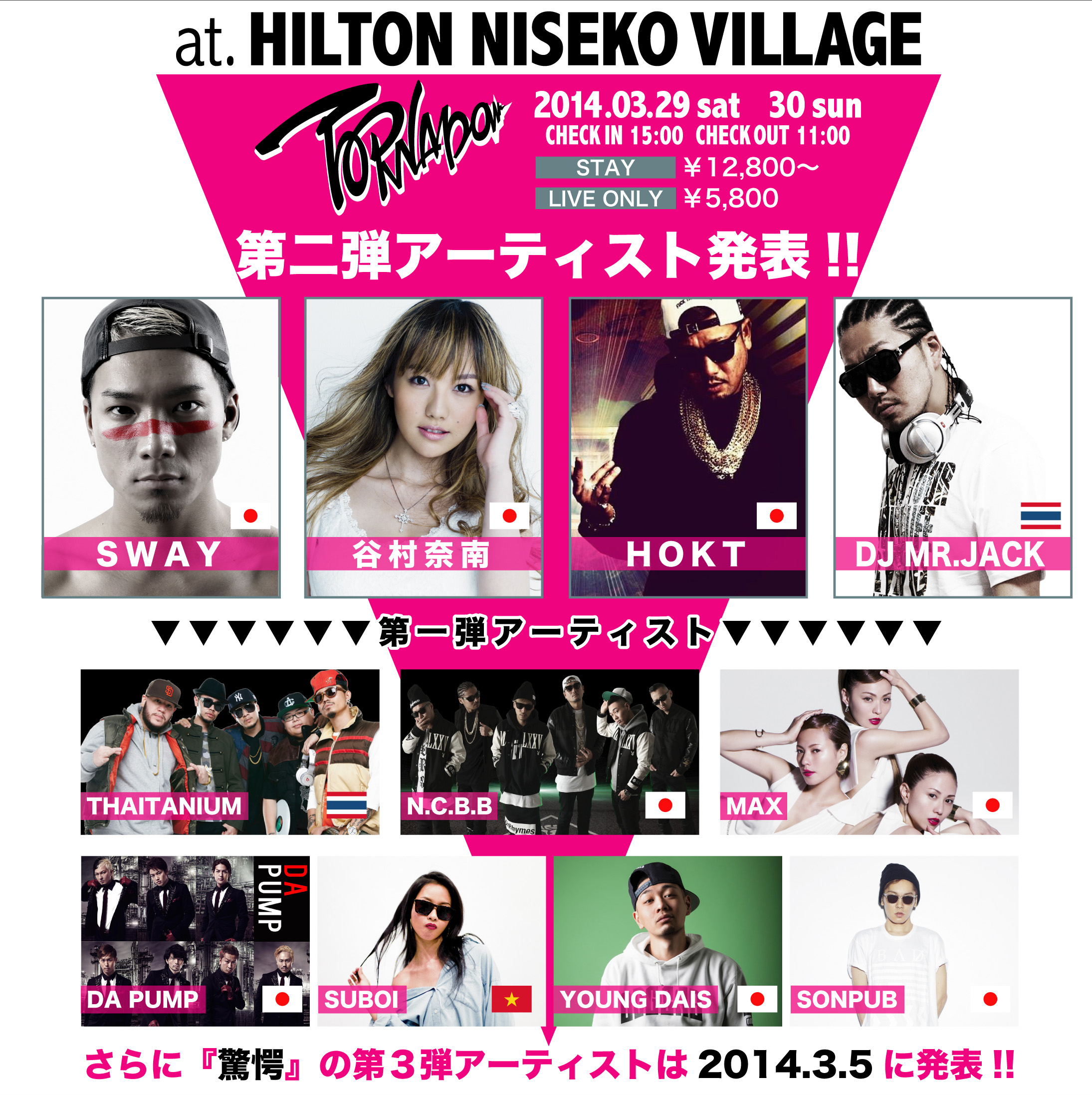 ASIA国際交流型音楽イベント“TORNADO” in NISEKO 第2弾出演アーティスト発表!
