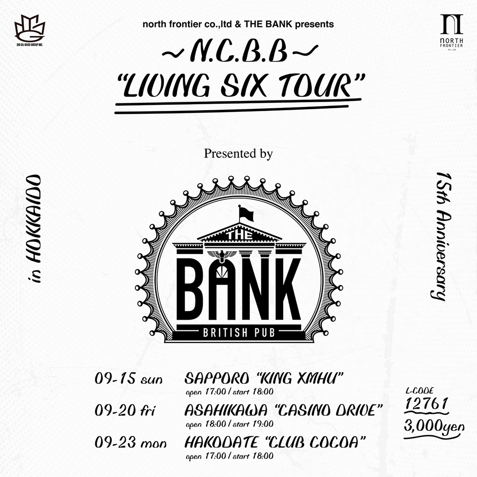9/15(日)札幌 KING XMHU よりスタートする「N.C.B.B “LIVING SIX TOUR” in HOKKAIDO」におきまして、多くのスポンサー様にご協力いただいております。